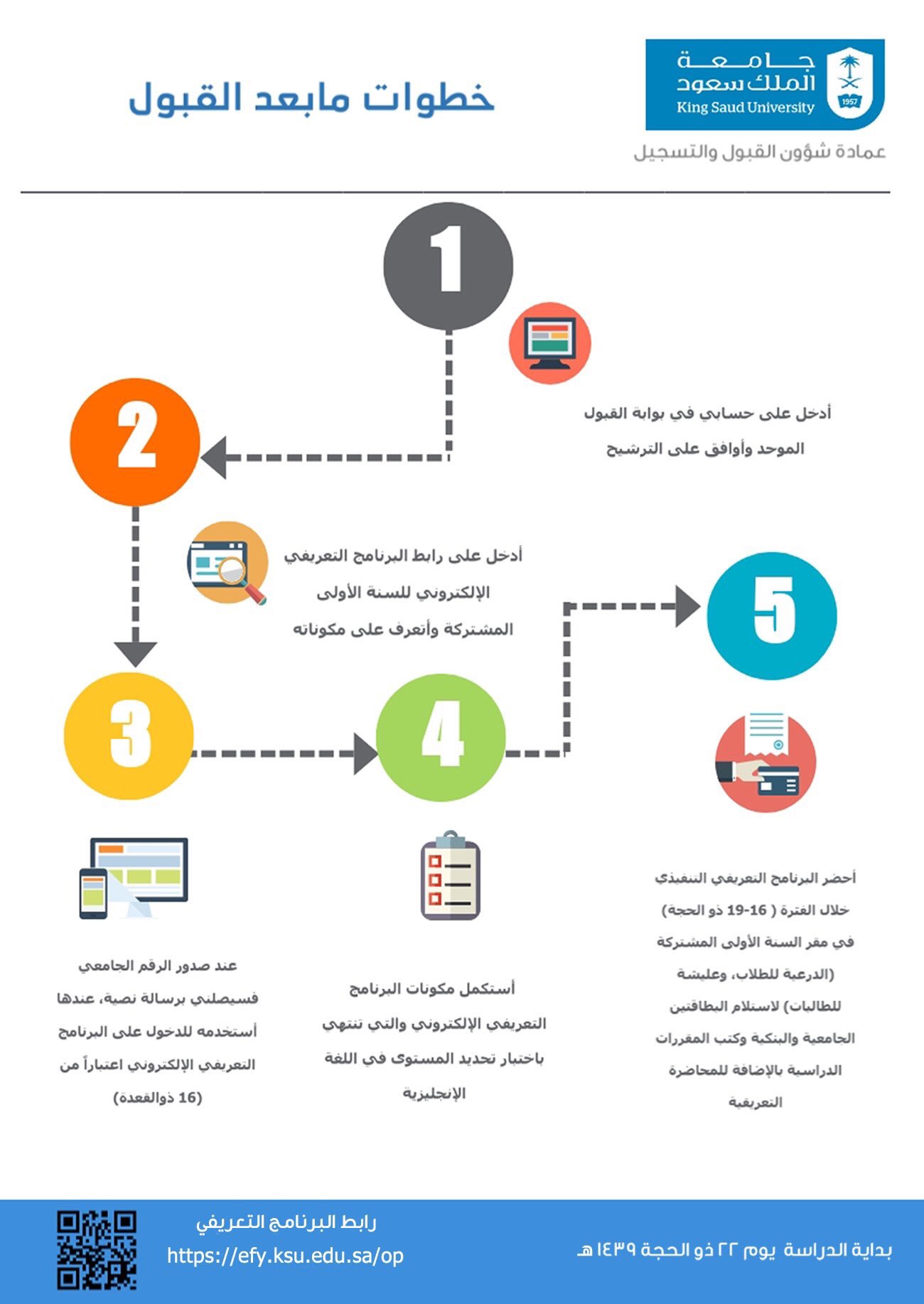 واحدة من أهم الأمور اللي تمي ز جامعة الملك سعود عن باقي الجامعات هي آلية التخصيص حيث أن التخصيص لا يعتمد كلي ا على معدل التحضيري السنة الأولى المشتركة بل يعتمد على. ونرحب بكم في البرنامج التعريفي بعمادة السنة الأولى المشتركة للعام الجامعي ۱٤٤٢هـ حيث عهدنا في بداية كل عام دراسي تنظيم برنامج تعريفي لجميع الطلبة المقبولين للدراسة. حجز موعد فعاليات البرنامج التعريفي التفاعلي. البرنامج التعريفي الإلكتروني لا يلزم الحضور online.