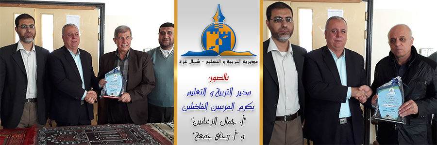 بمدرسة أبو عبيدة بن الجراح الثانوية للبنين مدير التربية و التعليم يكرم المربيين الفاضلين أ جمال الزعانين و أ ربحي جمعة مدونة مديرية التربية والتعليم شمال غزة