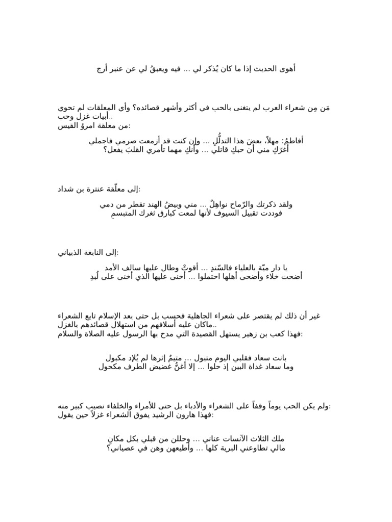 1 ولقد ذكرتك والرماح نواهل مني 2 قصيدة شهرزاد 3 إذا كان ذنبي أن حبك سيدي 4 أرجعي يا الف. أجمل قصيدة لنزار قباني. روجعت القصيدة حسب عدة مراجع.